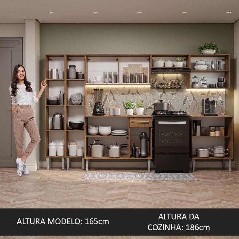 Casa e DecoraçãoMóveisCozinhasArmário de Cozinha Completa 293cm Rustic Emilly Madesa 04