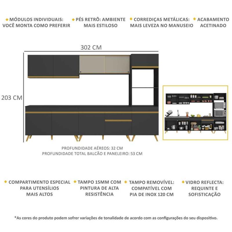 Armário de Cozinha Completa 302cm Veneza Multimóveis V3750 REF: 569092_Sicredi