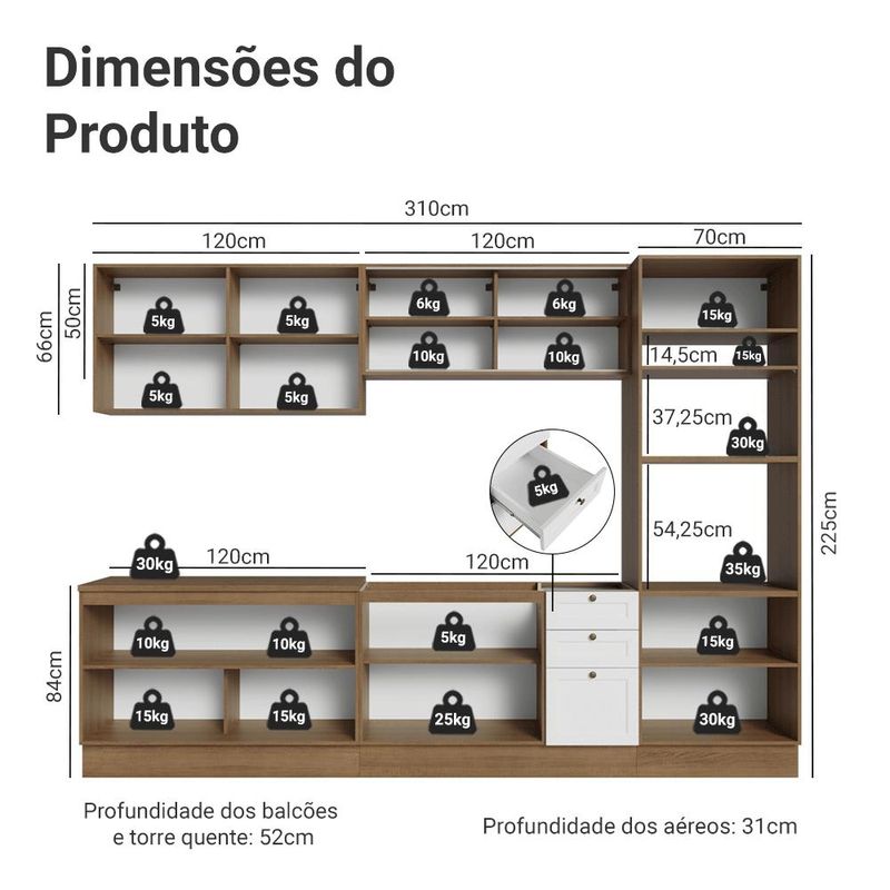 Casa e DecoraçãoMóveisArmário de CozinhaArmário de Cozinha Completa 310 cm Rustic/Branco Vik Madesa 01