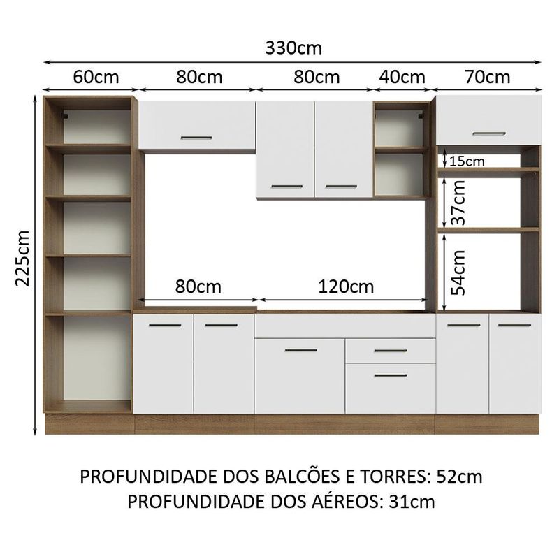 Casa e DecoraçãoMóveisCozinhasArmário de Cozinha Completa 330cm Rustic/Branco Agata Madesa 02