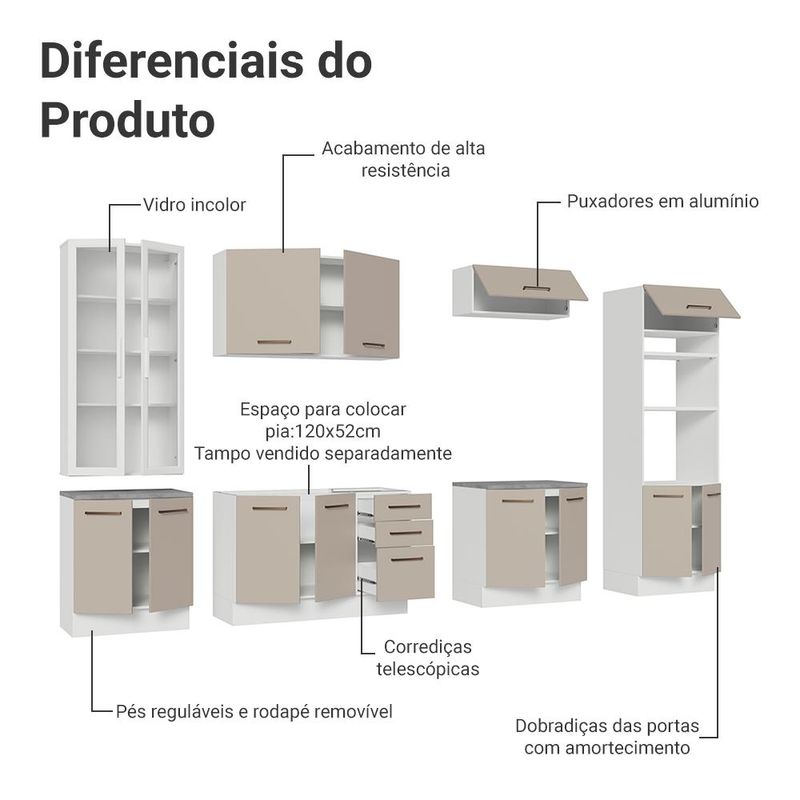 Armário de Cozinha Completa 340cm Branco/Crema Agata Madesa 01 REF: 685374_Sicredi