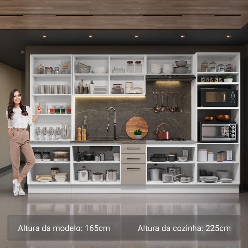 Casa e DecoraçãoMóveisCozinhasArmário de Cozinha Completa 340cm Branco/Crema Agata Madesa 01