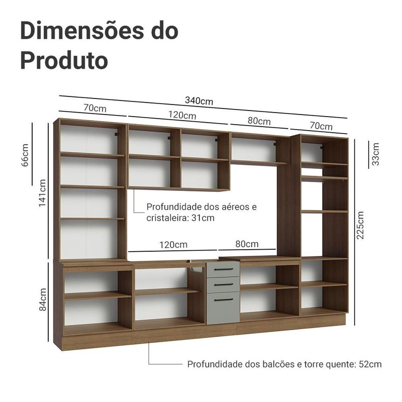 Casa e DecoraçãoMóveisCozinhasArmário de Cozinha Completa 340cm Rustic/Cinza Agata Madesa 01