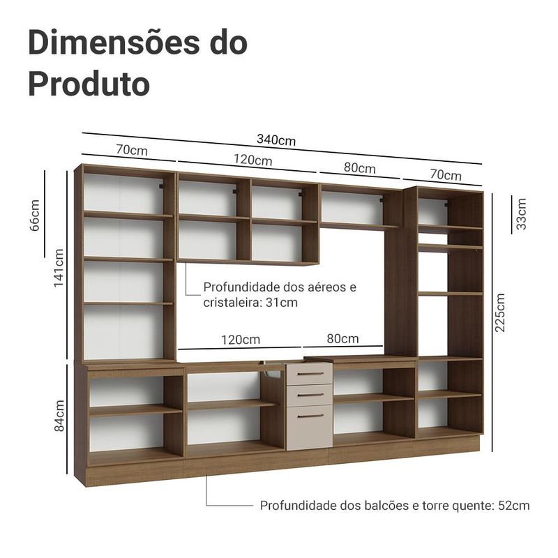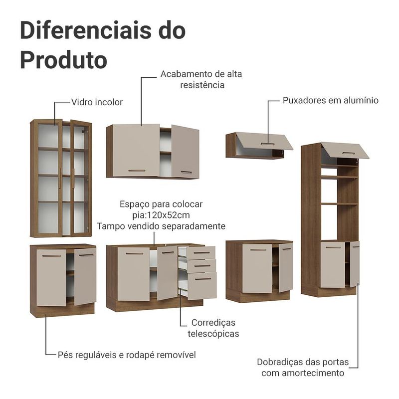 Casa e DecoraçãoMóveisCozinhasArmário de Cozinha Completa 340cm Rustic/Crema Agata Madesa 01