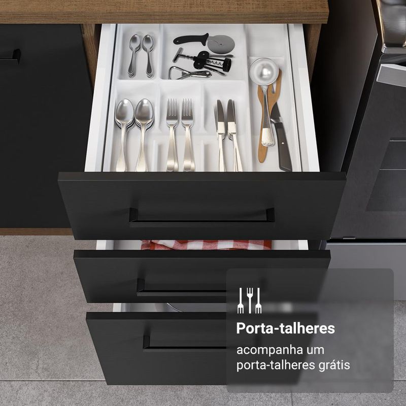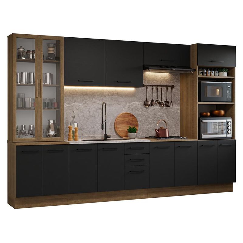 Casa e DecoraçãoMóveisCozinhasArmário de Cozinha Completa 340cm Rustic/Preto Agata Madesa 01