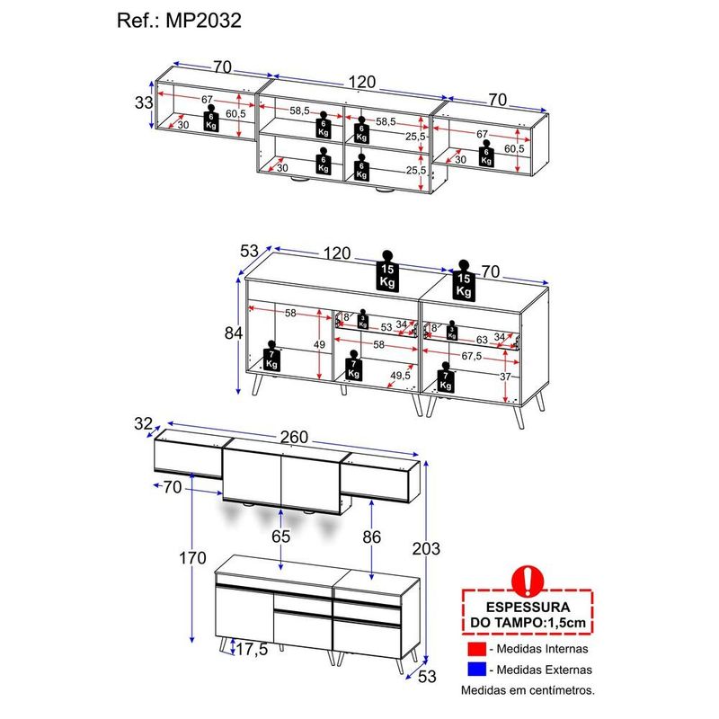 Armário de Cozinha Completa 5 peças com Leds MP2032 Veneza Up Multimóveis Preta REF: 578827_Sicredi