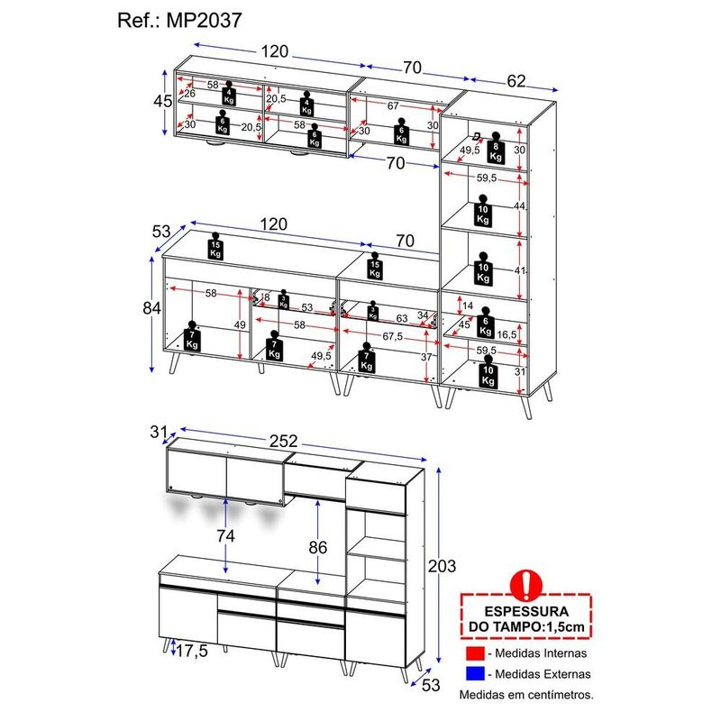Casa e DecoraçãoMóveisArmário de CozinhaArmário de Cozinha Completa 5 peças com Leds MP2037 Veneza Up Multimóveis Preta