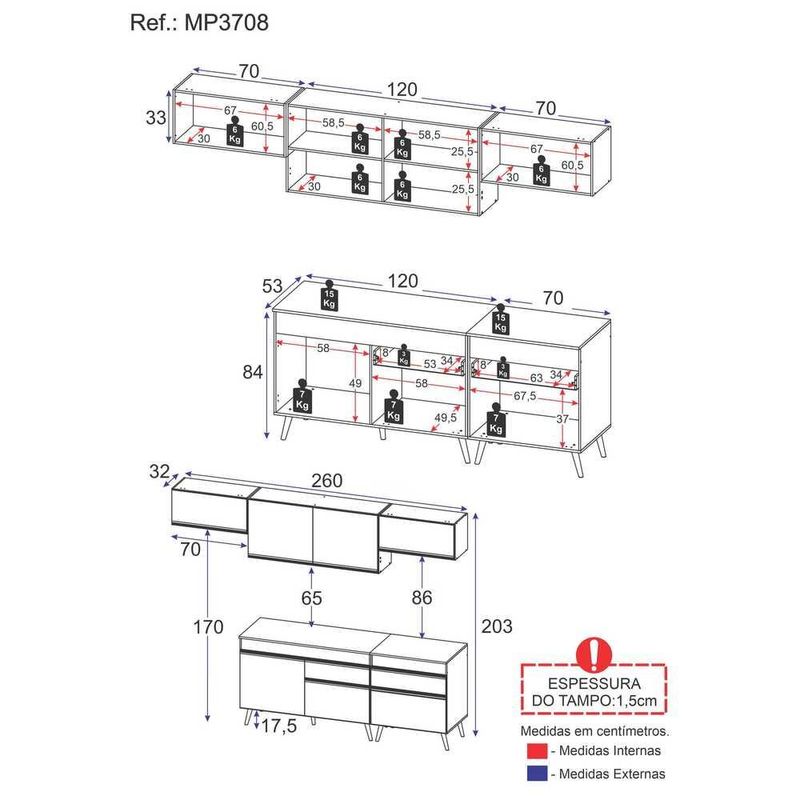 Casa e DecoraçãoMóveisArmário de CozinhaArmário de Cozinha Completa 5 peças MP3708 Veneza GB Multimóveis Preta