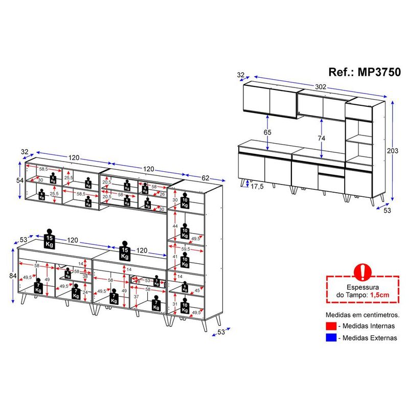 Casa e DecoraçãoMóveisCozinhasArmário de Cozinha Completa 5 peças MP3750 Veneza GW Multimóveis Branca