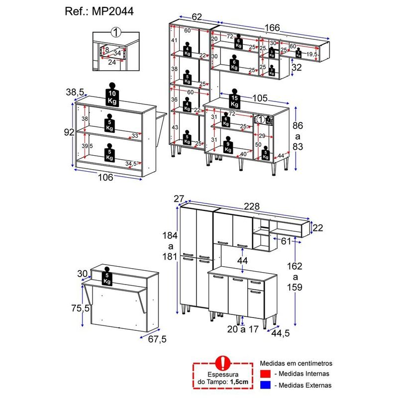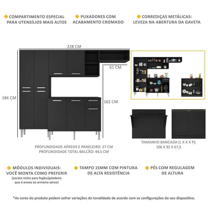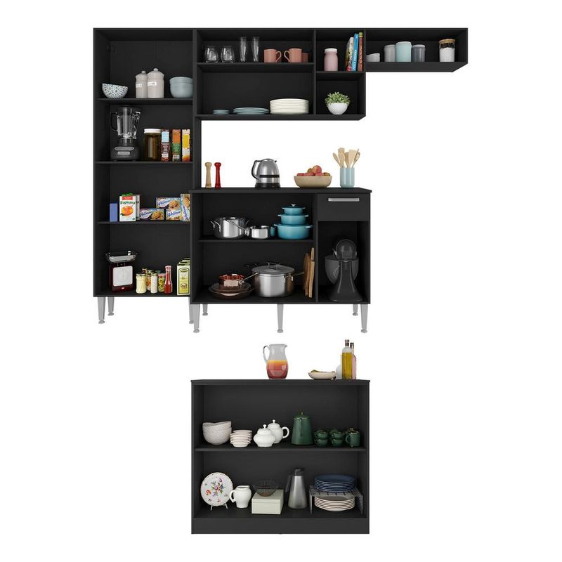 Armário de Cozinha Completa com Bancada Paris Multimóveis MP2044 Preta REF: 578773_Sicredi