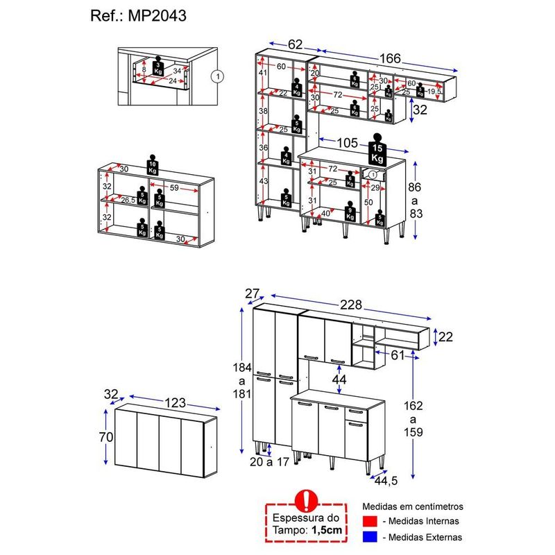 Armário de Cozinha Completa com Buffet/Aparador Paris Multimóveis MP2043 Madeirada/Preta REF: 764655_Sicredi