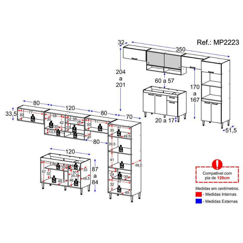 Armário de Cozinha Completa com Gabinete Pia e Torre Quente Paris Multimóveis MP2223 REF: 570058_Sicredi