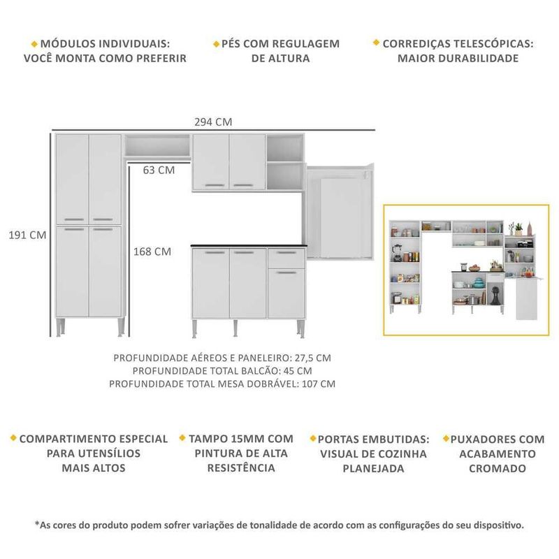 Armário de Cozinha Completa com Mesa Dobrável Siena Multimóveis MP2039 Branca REF: 572131_Sicredi