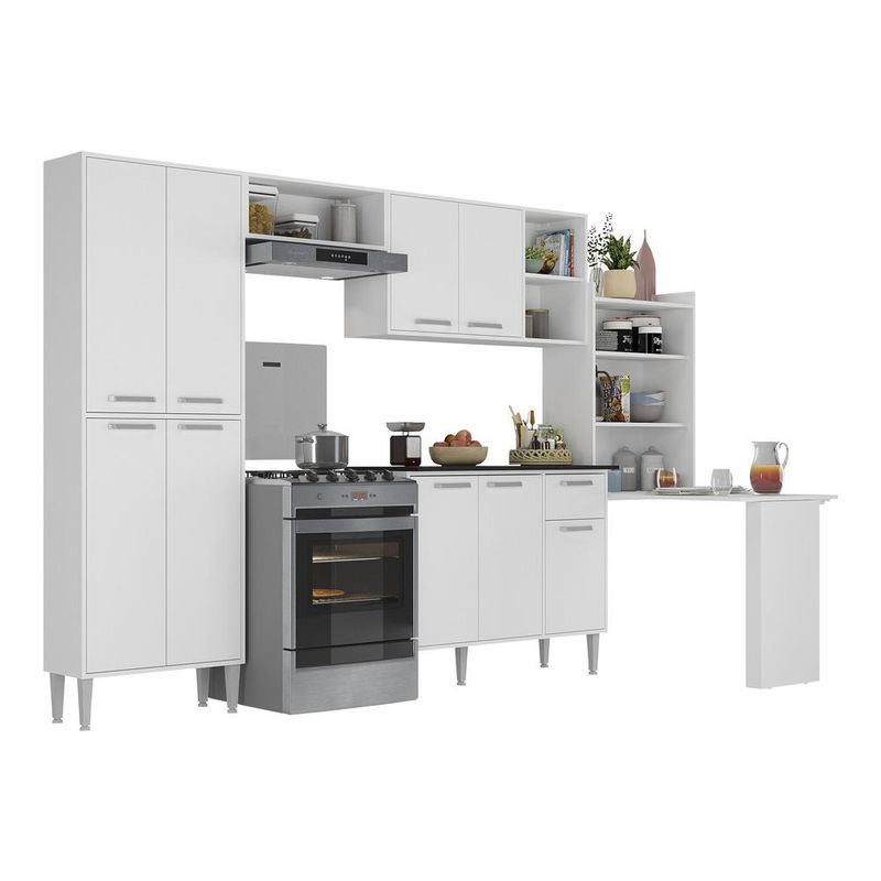 Casa e DecoraçãoMóveisArmário de CozinhaArmário de Cozinha Completa com Mesa Dobrável Siena Multimóveis MP2039 Branca