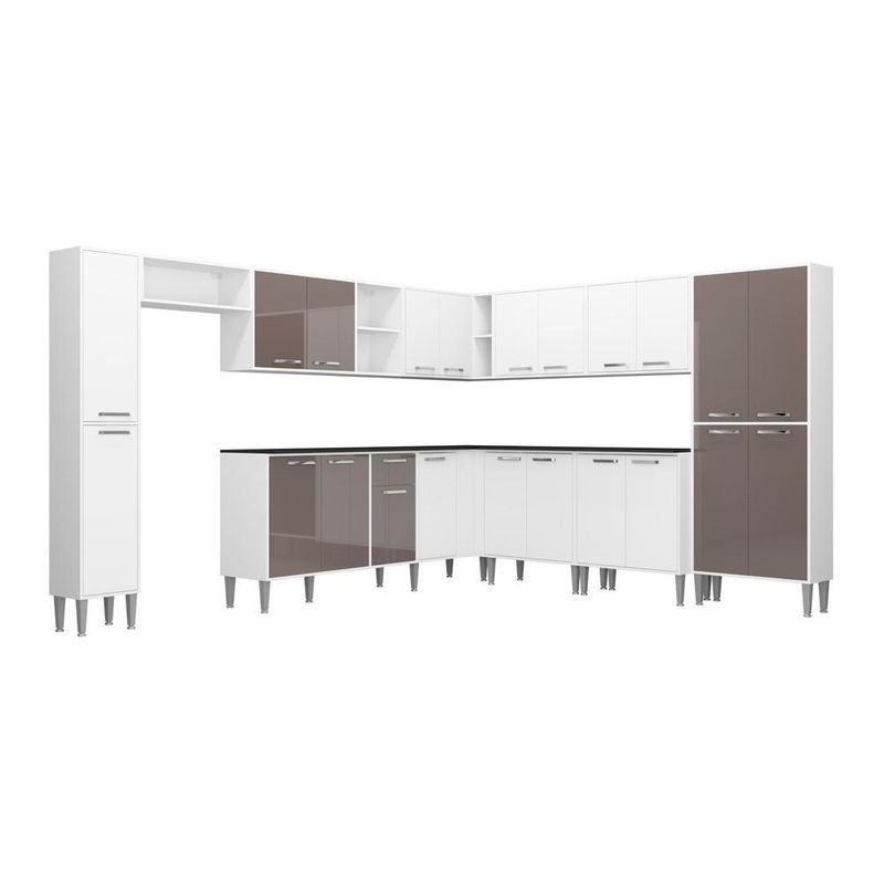 Armário de Cozinha Completa com Tampo 11 peças Xangai Pop Multimóveis Branca/Lacca Fumê REF: 771574_Sicredi