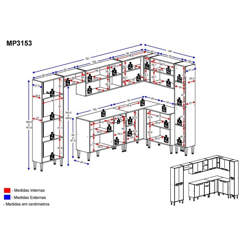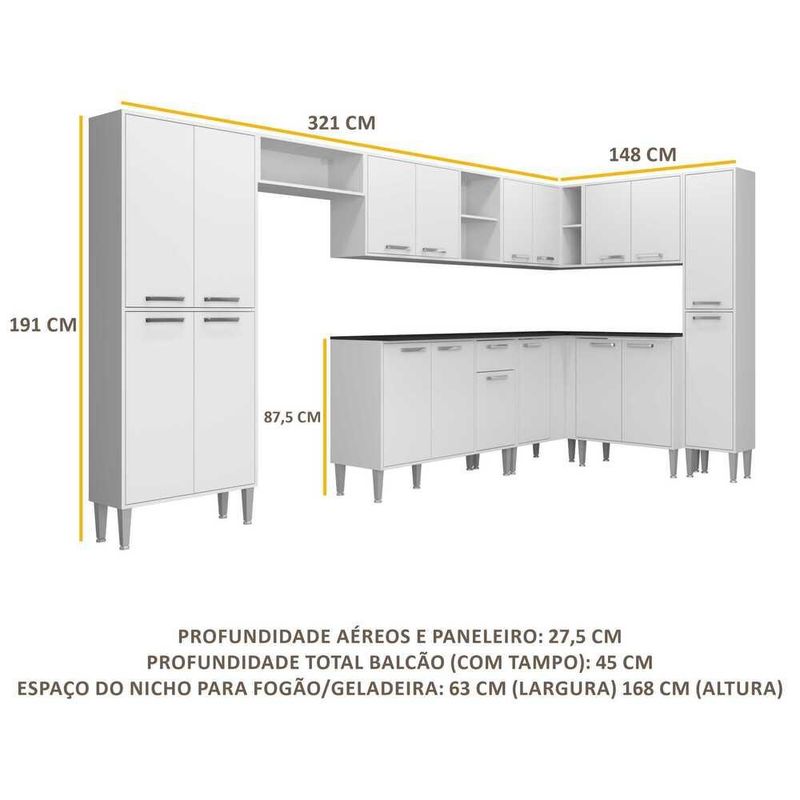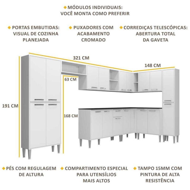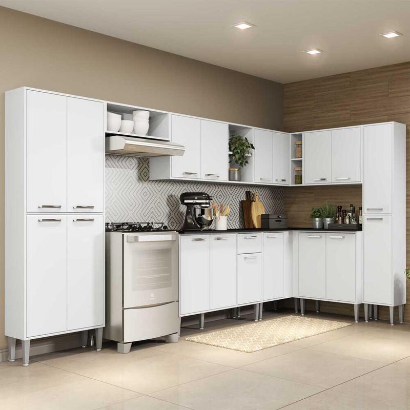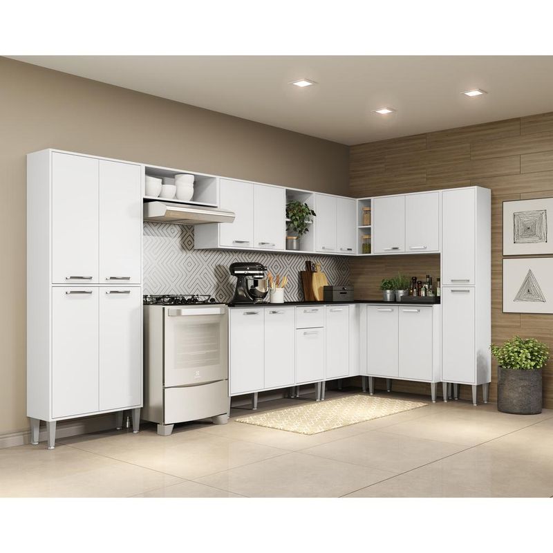 Armário de Cozinha Completa com Tampo 9 peças Xangai Rock Multimóveis Branca REF: 568303_Sicredi