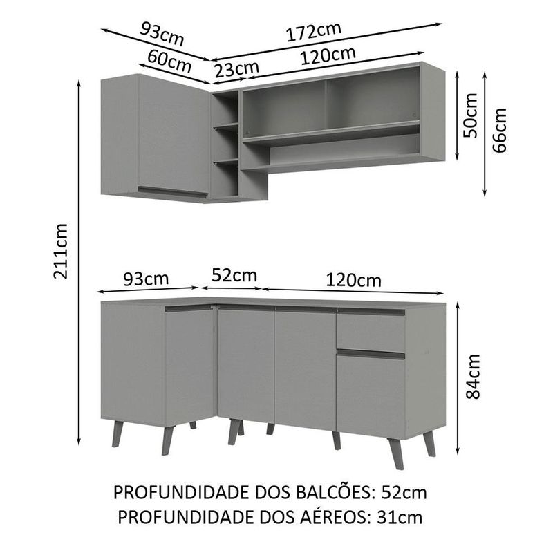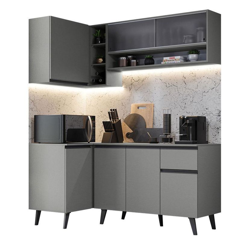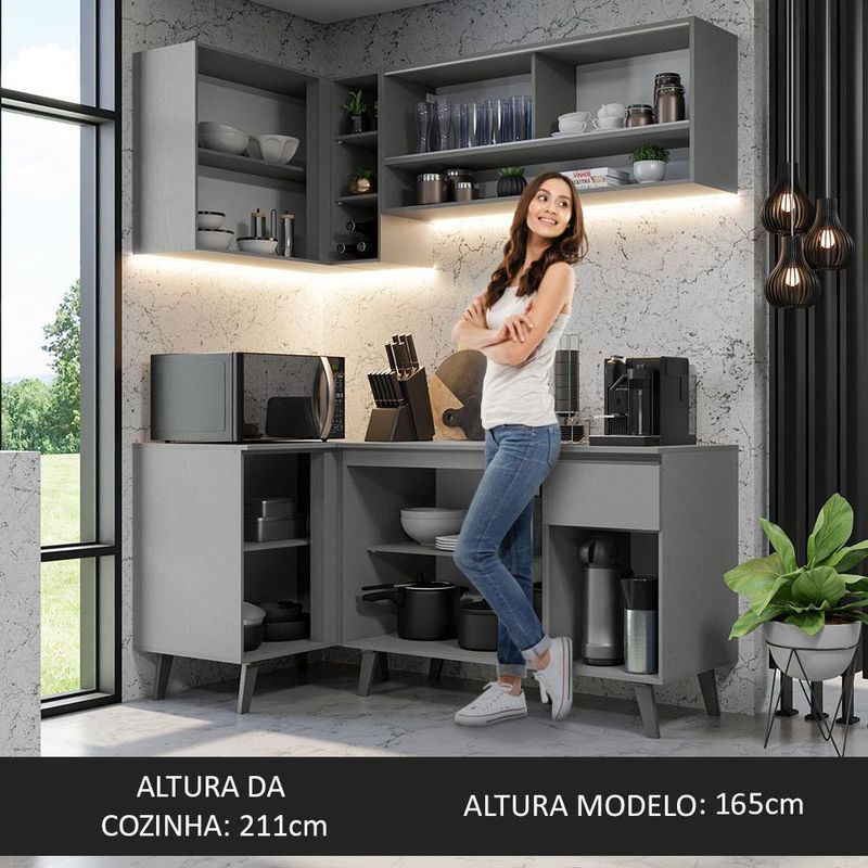Casa e DecoraçãoMóveisCozinhasArmário de Cozinha Completa de Canto 265cm Cinza Nice Madesa 02
