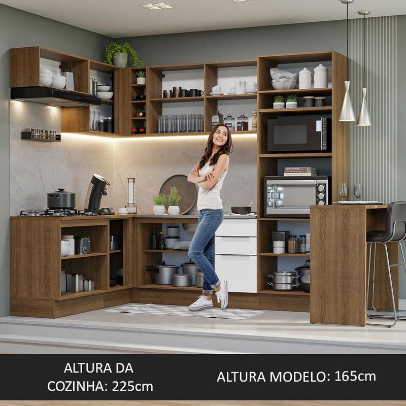 Casa e DecoraçãoMóveisCozinhasArmário de Cozinha Completa de Canto 489cm Rustic/Branco Stella Madesa