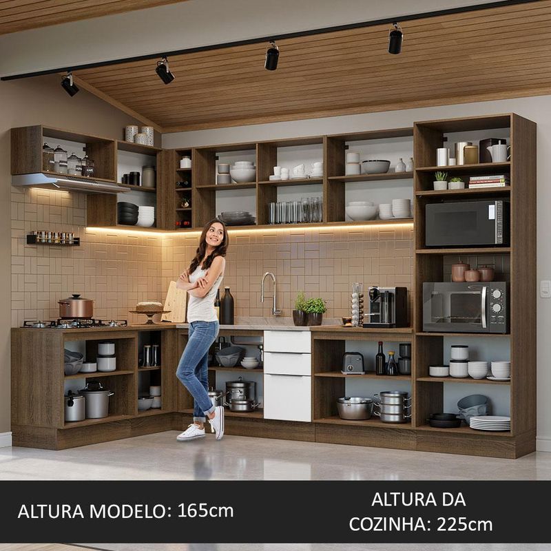Casa e DecoraçãoMóveisCozinhasArmário de Cozinha Completa de Canto 499cm Rustic/Branco Stella Madesa 01
