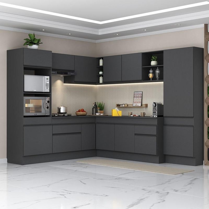 Casa e DecoraçãoMóveisArmário de CozinhaArmário de Cozinha Completa de Canto com Rodapé Veneza Multimóveis MP2082.895 Preto
