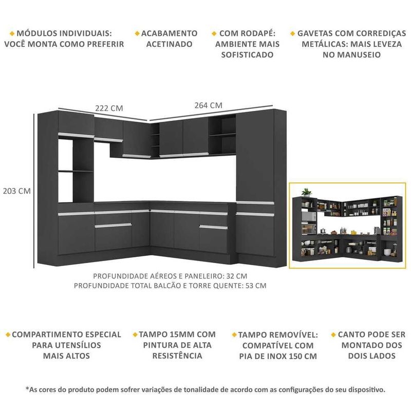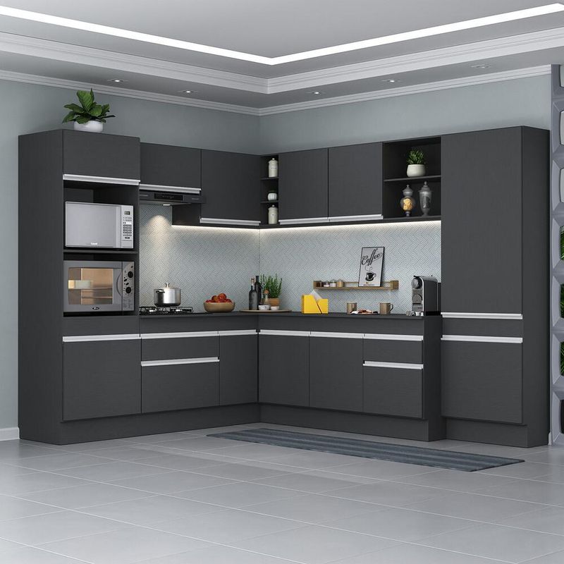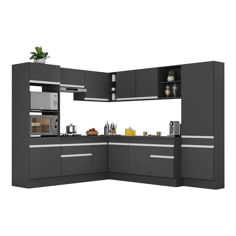 Armário de Cozinha Completa de Canto com Rodapé Veneza Multimóveis MP2082.898 Preto/Branco REF: 766410_Sicredi