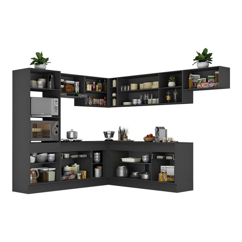 Armário de Cozinha Completa de Canto com Rodapé Veneza Multimóveis MP2083.898 Preto/Branco REF: 772625_Sicredi