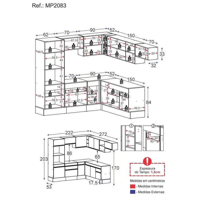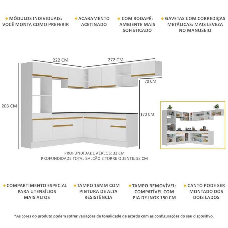 Armário de Cozinha Completa de Canto com Rodapé Veneza Multimóveis MP2083 Branca REF: 578133_Sicredi