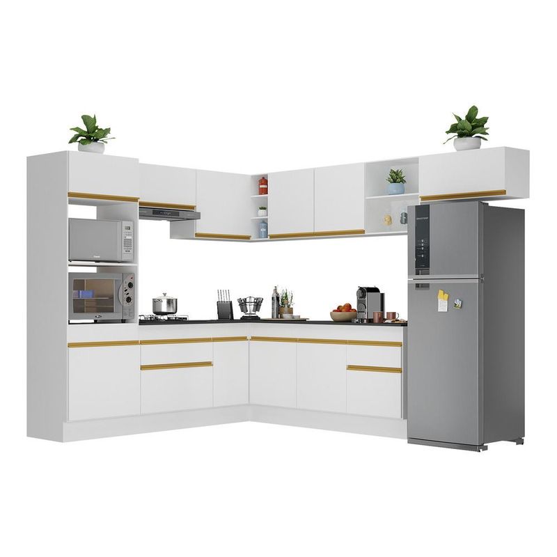 Casa e DecoraçãoMóveisCozinhasArmário de Cozinha Completa de Canto com Rodapé Veneza Multimóveis MP2083 Branca