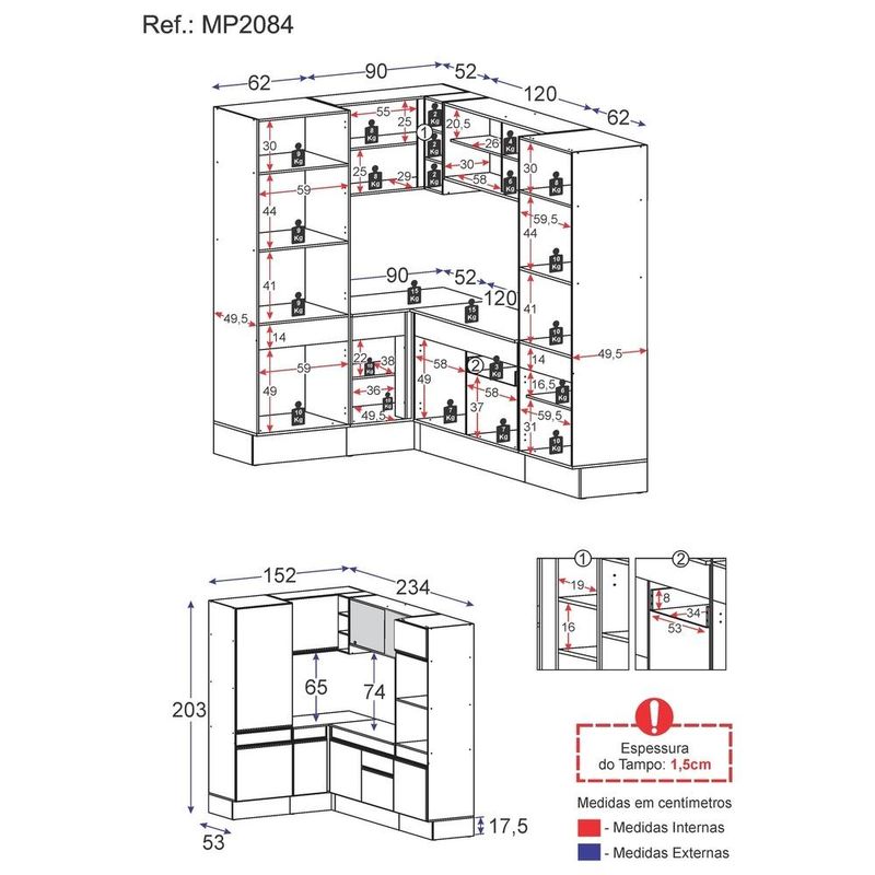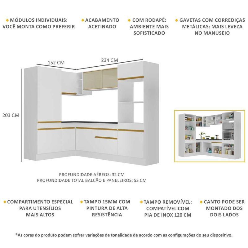 Armário de Cozinha Completa de Canto com Rodapé Veneza Multimóveis MP2084 Branca REF: 577941_Sicredi