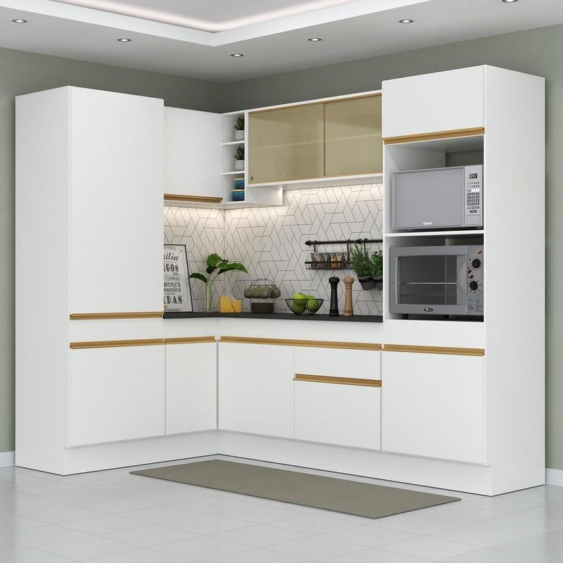 Casa e DecoraçãoMóveisCozinhasArmário de Cozinha Completa de Canto com Rodapé Veneza Multimóveis MP2084 Branca