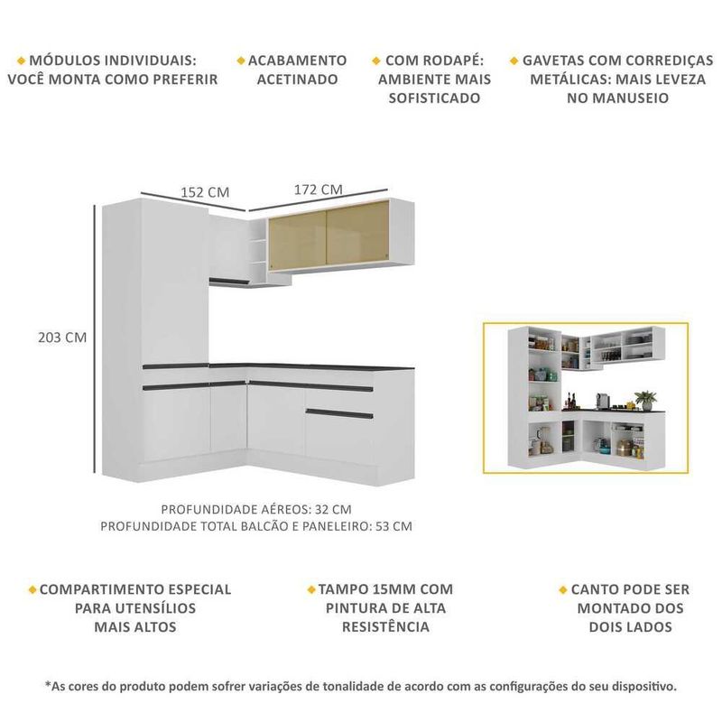 Armário de Cozinha Completa de Canto com Rodapé Veneza Multimóveis MP2088.964 Branco/Preto REF: 770421_Sicredi