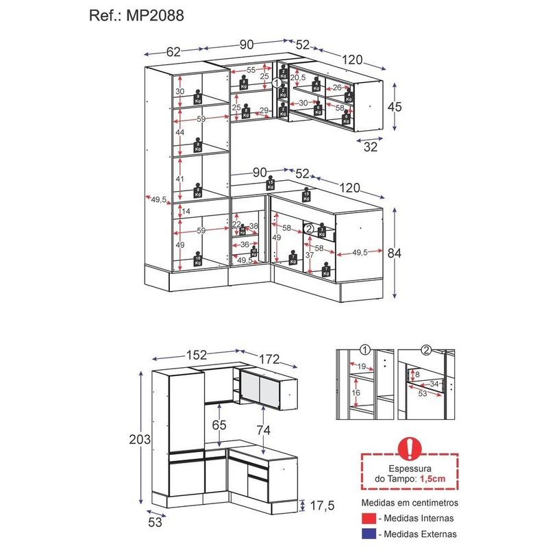 Armário de Cozinha Completa de Canto com Rodapé Veneza Multimóveis MP2088 Branca REF: 577768_Sicredi