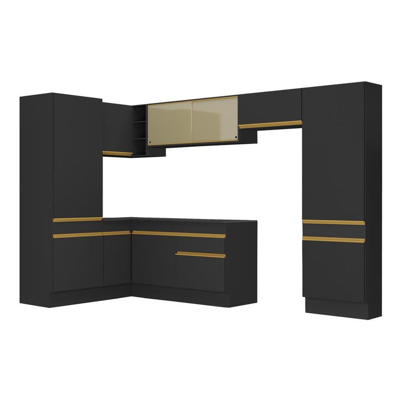 Casa e DecoraçãoMóveisArmário de CozinhaArmário de Cozinha Completa de Canto com Rodapé Veneza Multimóveis MP2090 Preta