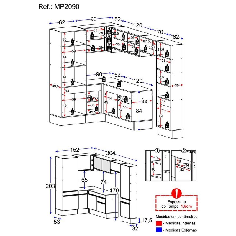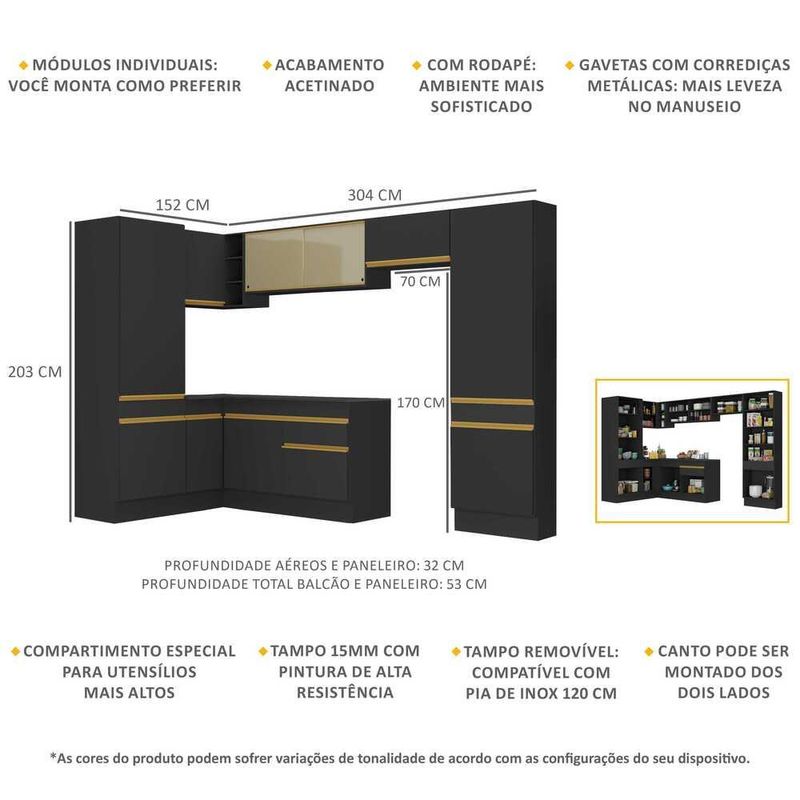 Armário de Cozinha Completa de Canto com Rodapé Veneza Multimóveis MP2090 Preta REF: 770032_Sicredi