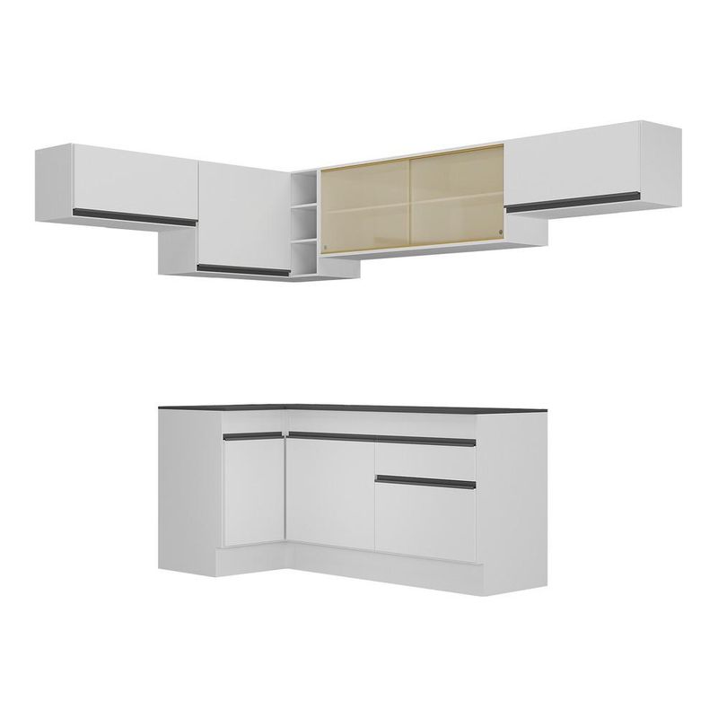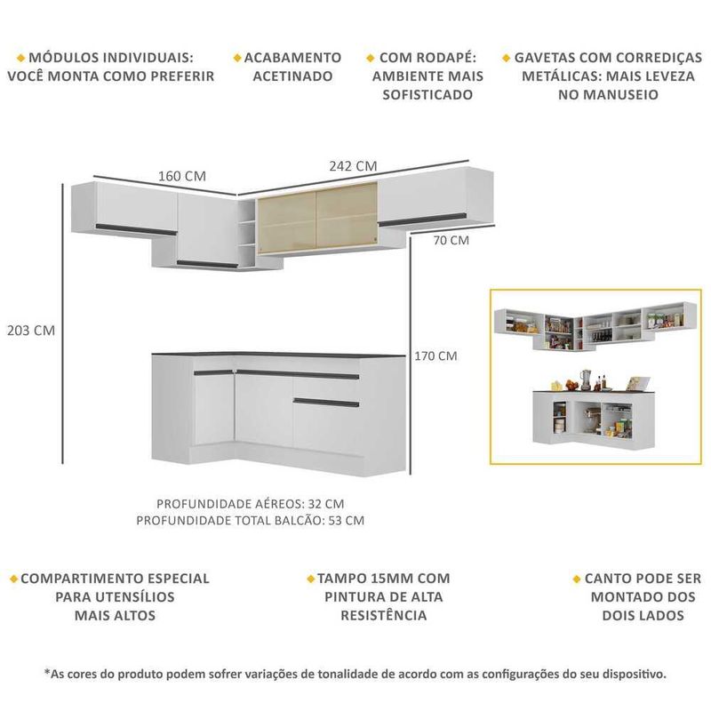 Armário de Cozinha Completa de Canto com Rodapé Veneza Multimóveis MP2095.964 Branco/Preto REF: 568318_Sicredi