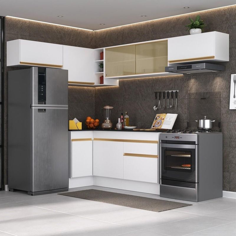 Casa e DecoraçãoMóveisArmário de CozinhaArmário de Cozinha Completa de Canto com Rodapé Veneza Multimóveis MP2095 Branca