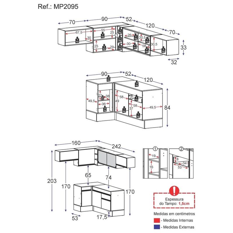 Armário de Cozinha Completa de Canto com Rodapé Veneza Multimóveis MP2095 Preta REF: 569107_Sicredi