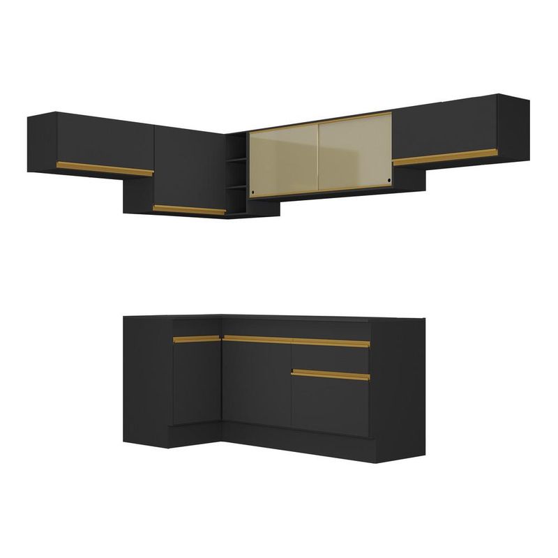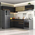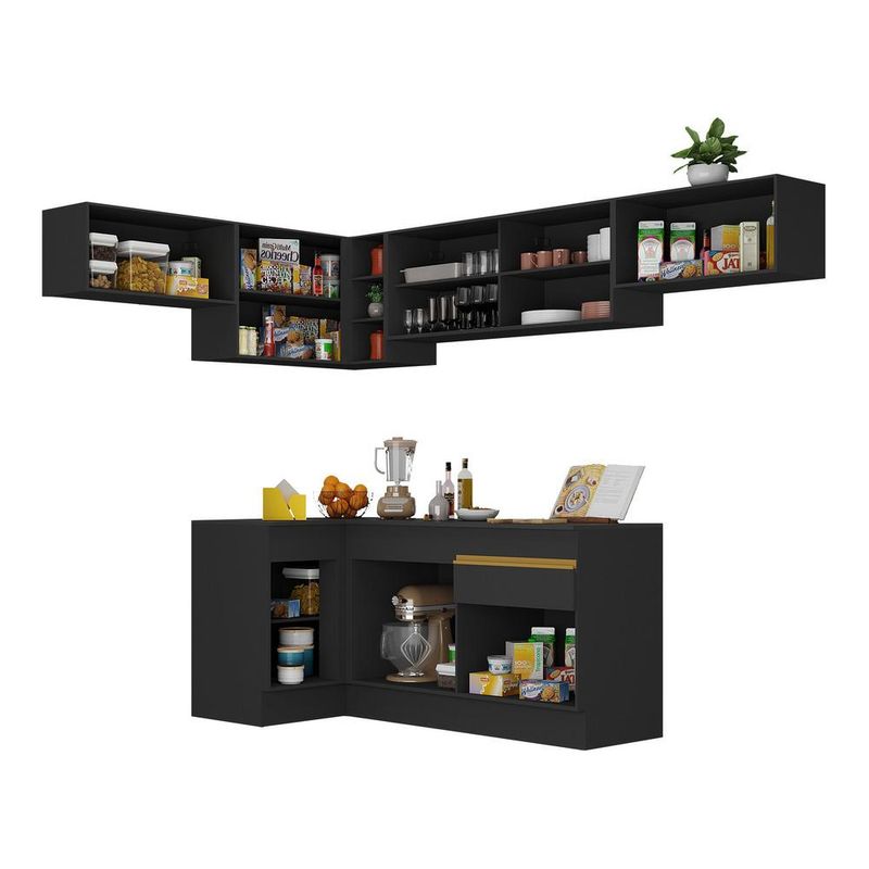 Casa e DecoraçãoMóveisCozinhasArmário de Cozinha Completa de Canto com Rodapé Veneza Multimóveis MP2095 Preta