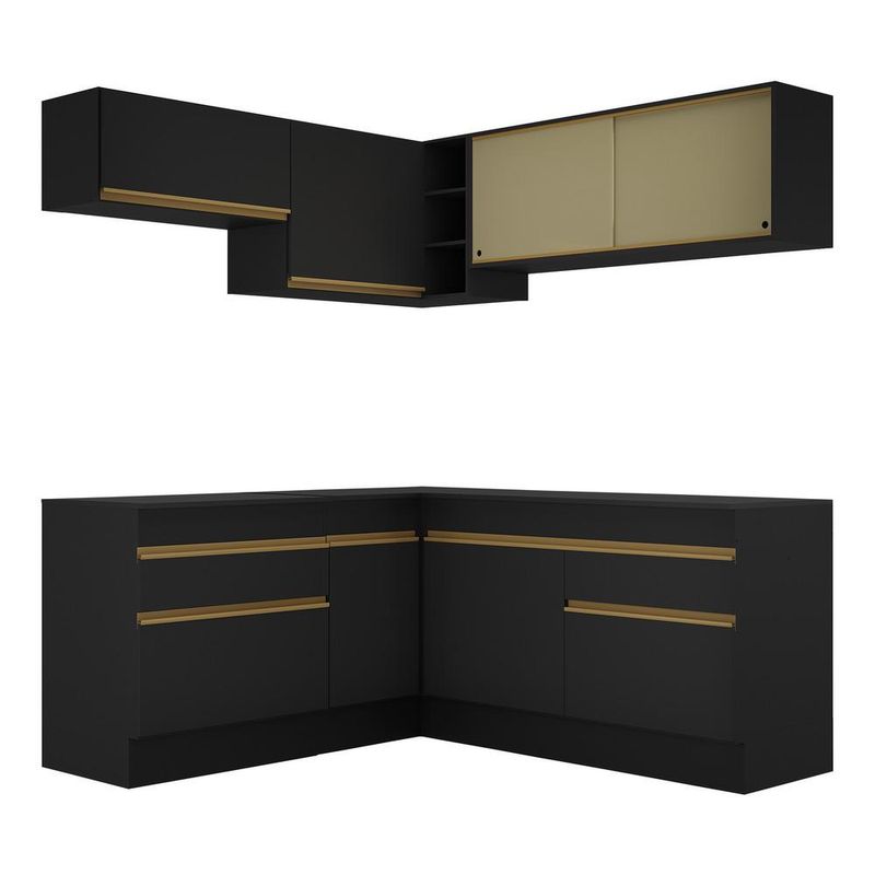 Casa e DecoraçãoMóveisArmário de CozinhaArmário de Cozinha Completa de Canto com Rodapé Veneza Multimóveis MP2097 Preta