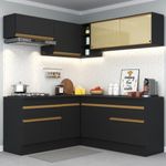 Armário de Cozinha Completa de Canto com Rodapé Veneza Multimóveis MP2097 Preta REF: 769600_Sicredi
