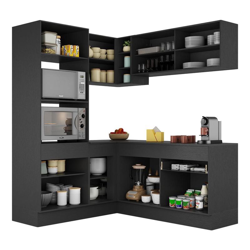 Casa e DecoraçãoMóveisCozinhasArmário de Cozinha Completa de Canto com Rodapé Veneza Multimóveis MP2098.895 Preto