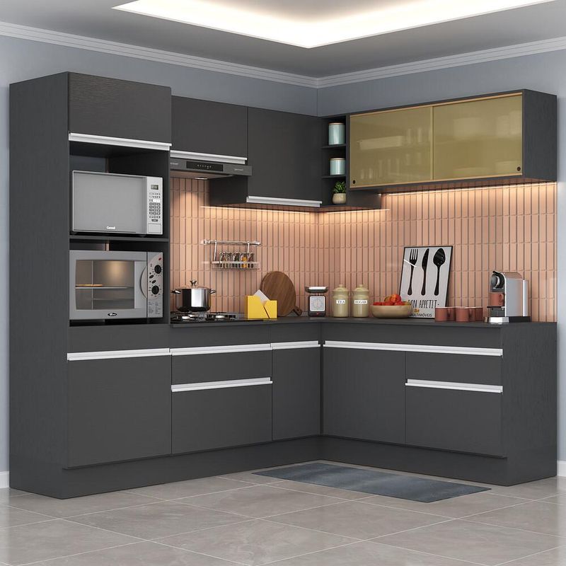 Armário de Cozinha Completa de Canto com Rodapé Veneza Multimóveis MP2099.898 Preto/Branco REF: 766479_Sicredi