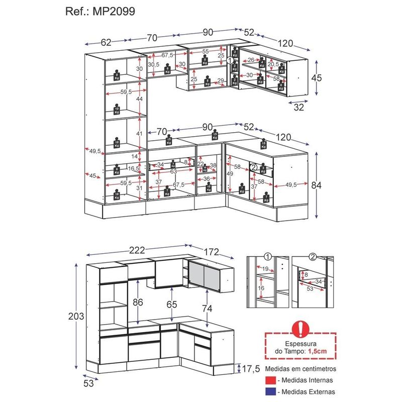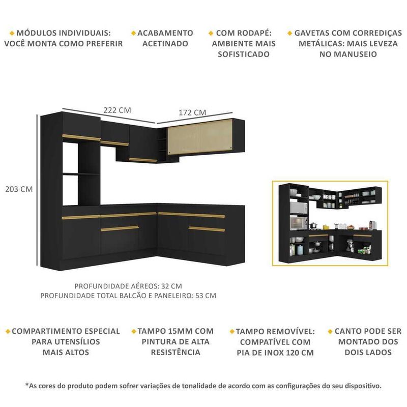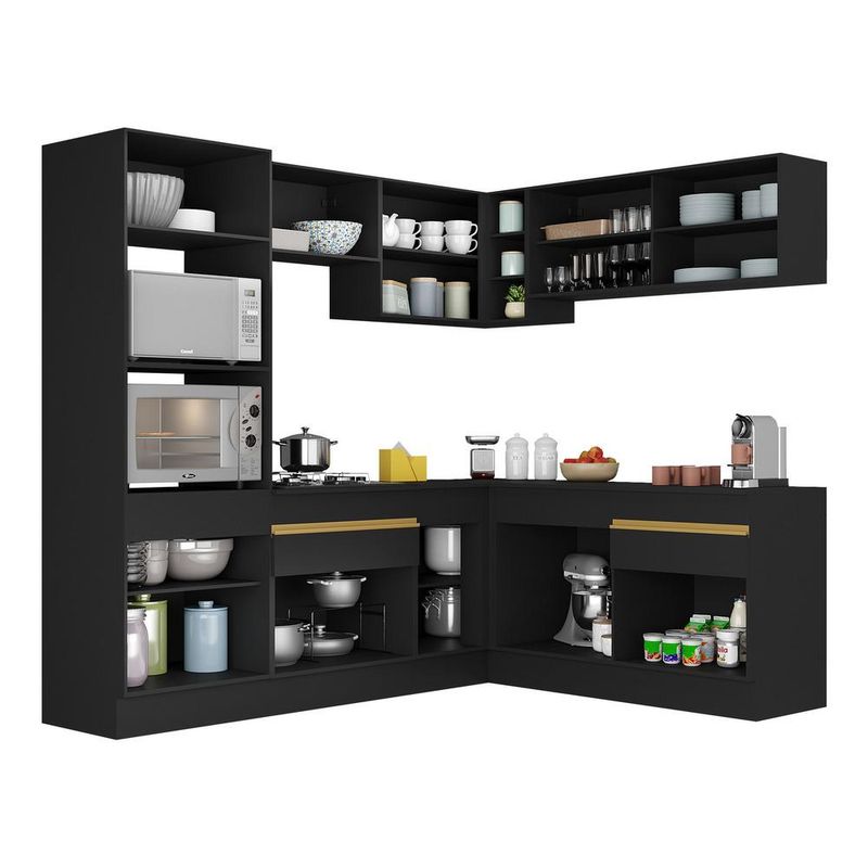 Armário de Cozinha Completa de Canto com Rodapé Veneza Multimóveis MP2099 Preta REF: 766442_Sicredi