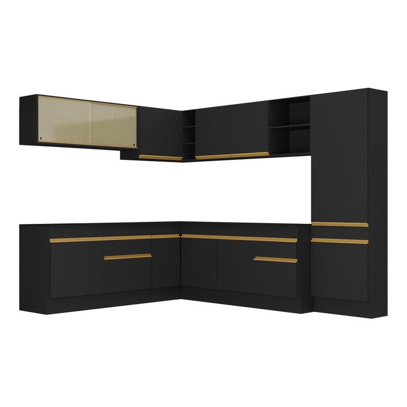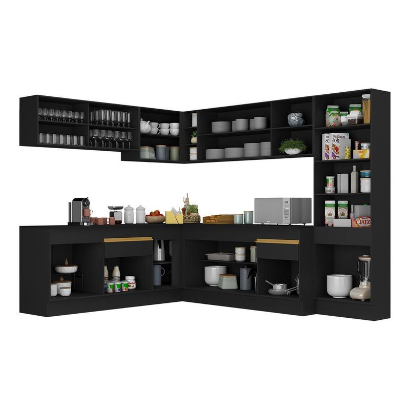 Casa e DecoraçãoMóveisArmário de CozinhaArmário de Cozinha Completa de Canto com Rodapé Veneza Multimóveis MP2100 Preta