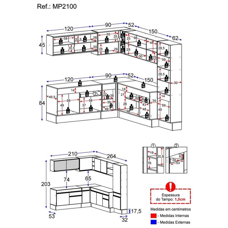 Armário de Cozinha Completa de Canto com Rodapé Veneza Multimóveis MP2100 Preta REF: 766406_Sicredi