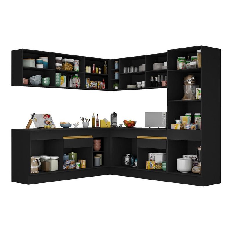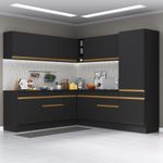 Casa e DecoraçãoMóveisArmário de CozinhaArmário de Cozinha Completa de Canto com Rodapé Veneza Multimóveis MP2101 Preta