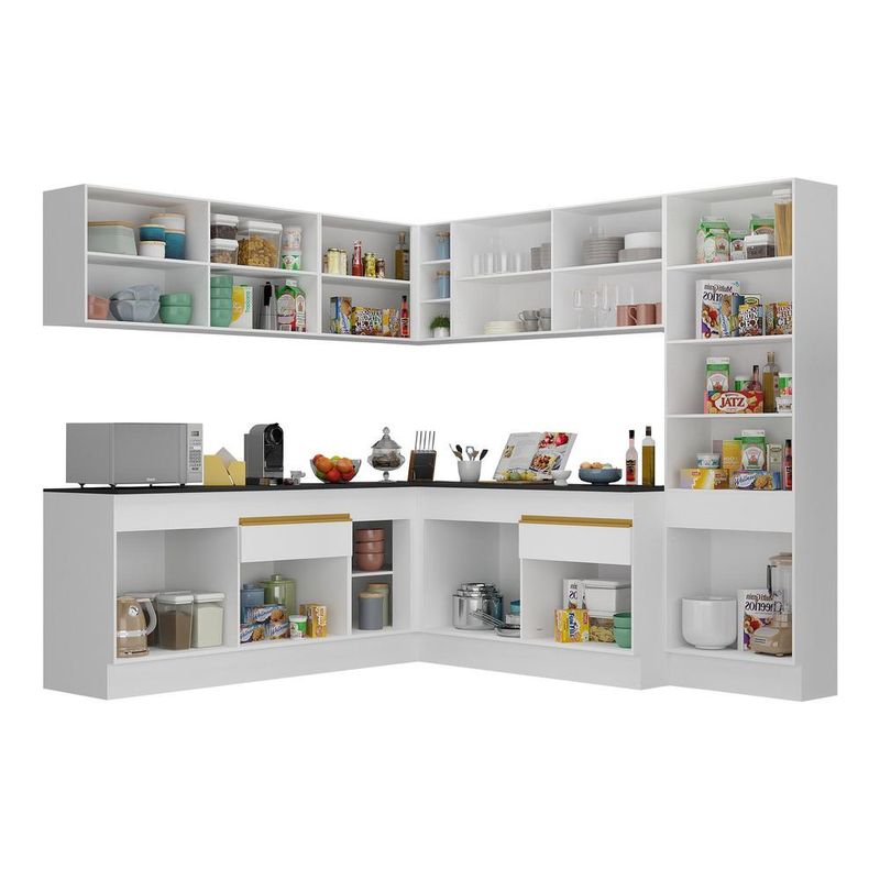 Casa e DecoraçãoMóveisCozinhasArmário de Cozinha Completa de Canto com Rodapé Veneza Multimóveis MP2102 Branca
