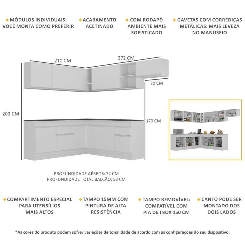 Armário de Cozinha Completa de Canto com Rodapé Veneza Multimóveis MP2103.891 Branco REF: 569115_Sicredi