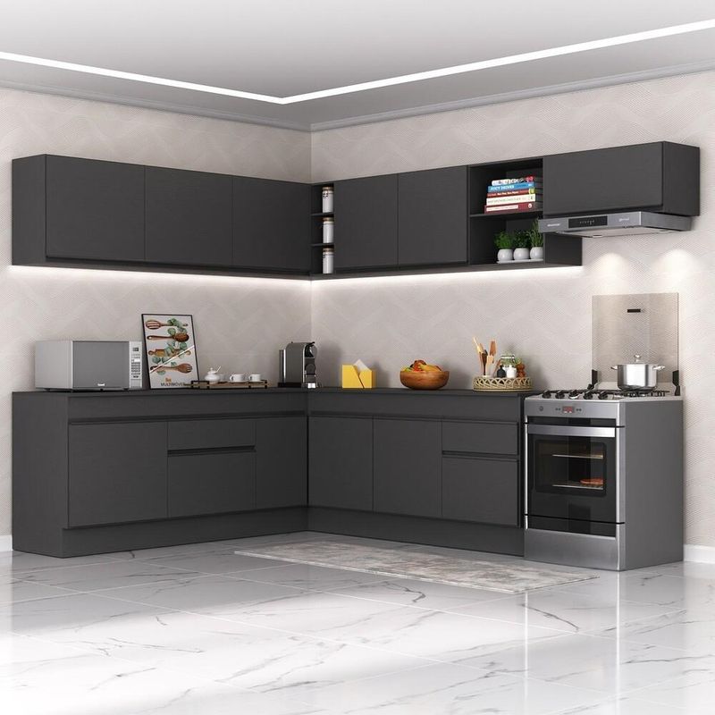Casa e DecoraçãoMóveisCozinhasArmário de Cozinha Completa de Canto com Rodapé Veneza Multimóveis MP2103.895 Preto