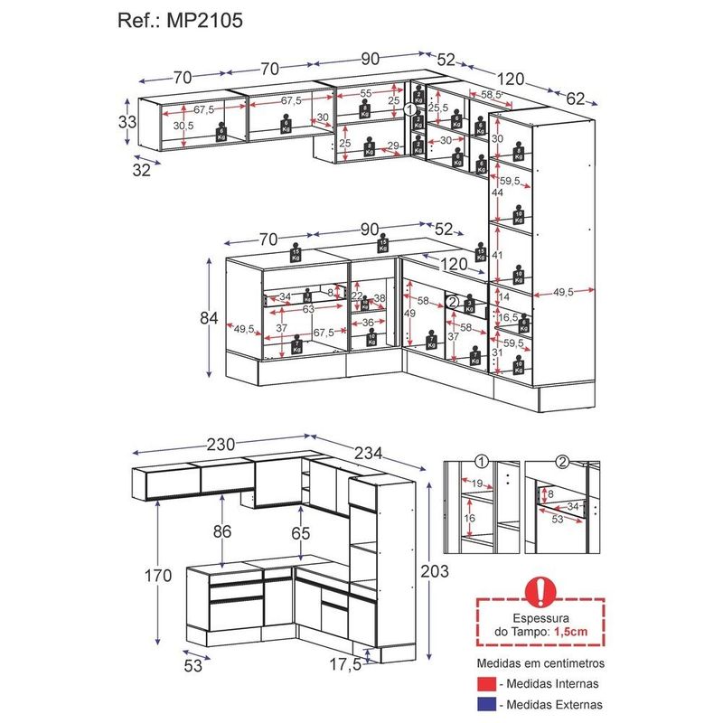 Armário de Cozinha Completa de Canto com Rodapé Veneza Multimóveis MP2105 Branca REF: 568332_Sicredi